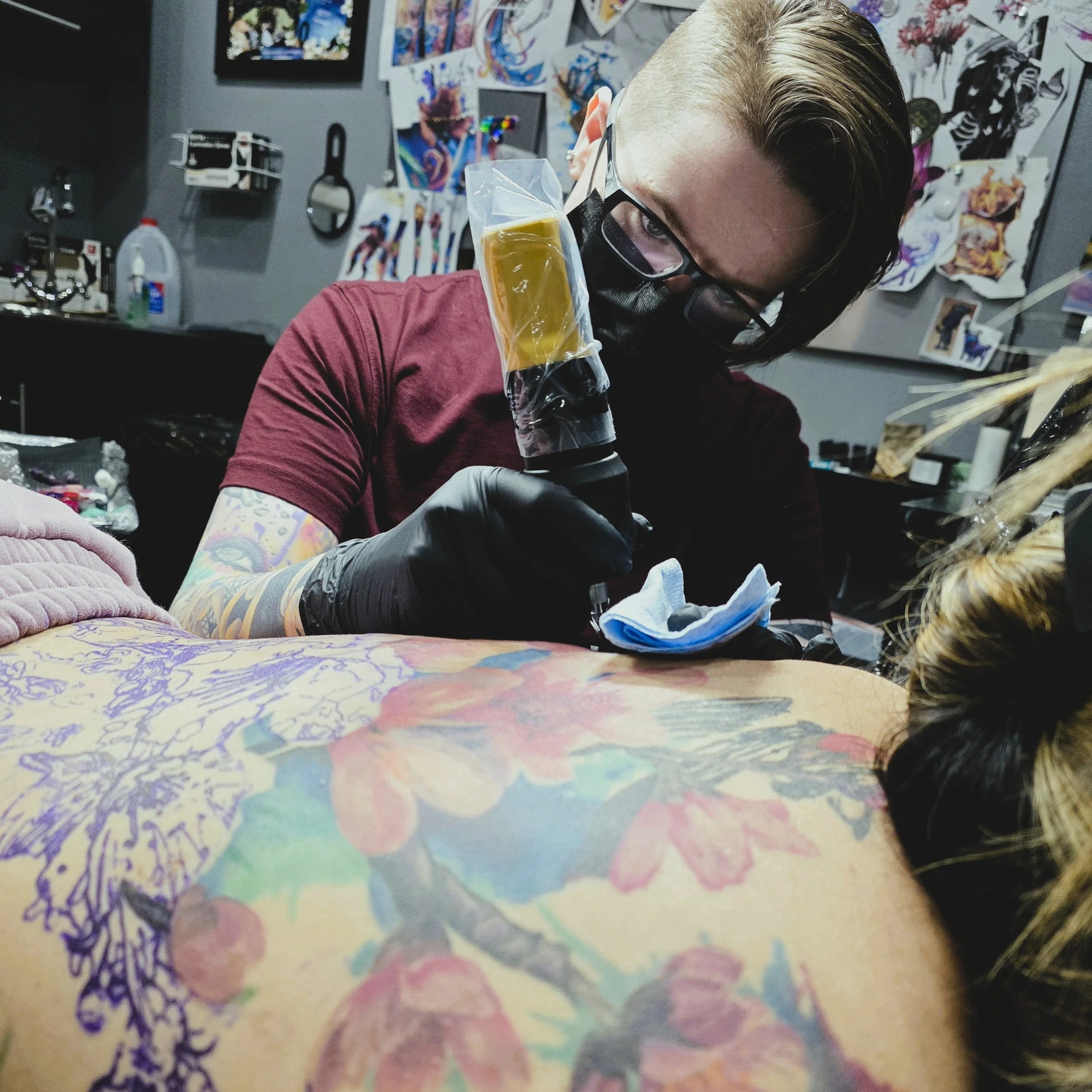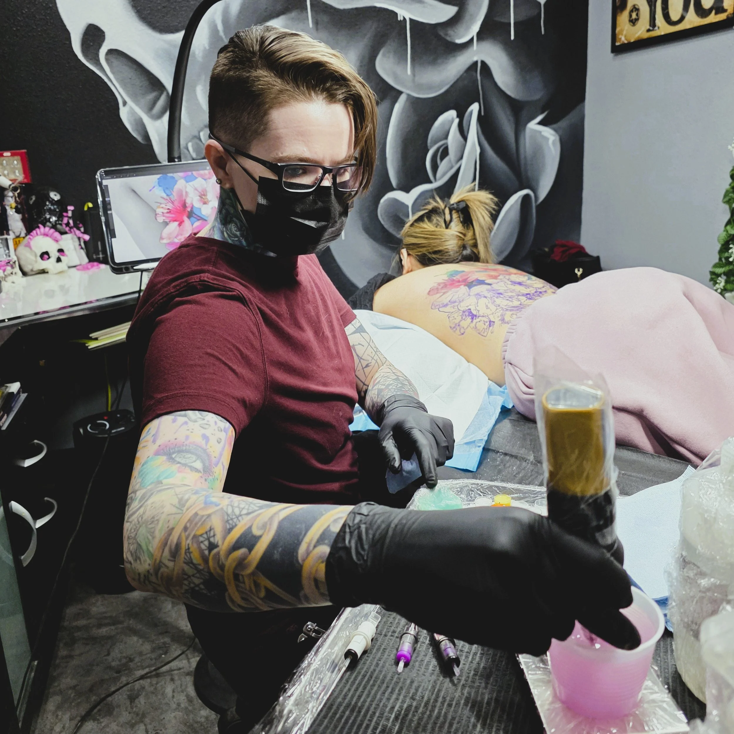 On the day of your appointment, arriving 5 to 10 minutes early is appreciated to help get you settled in with documents signed. I will have your design ready for review; we will go over it together and answer all questions before starting. Modifications may be needed and that is okay! Breaks are taken as needed and vary depending on need to stretch, get a snack, or use the restroom. Filtered drinking water is available. Please refrain from smoking on breaks. At the completion of that tattoo, I will clean and wrap it while providing aspects of aftercare individualized to your tattoo based on size, placement, etc. For payment I take cash or card, preferably card. Tips appreciated!